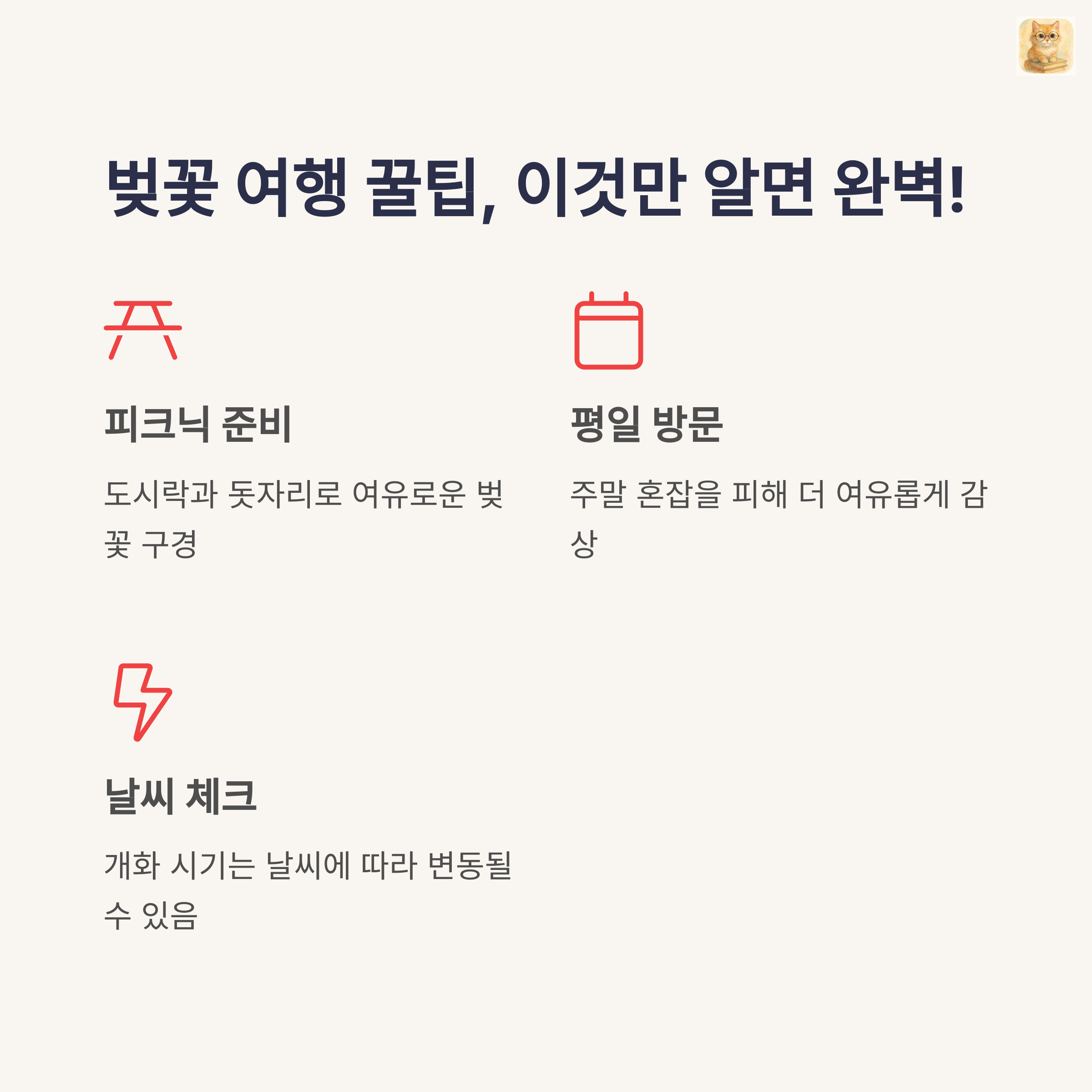| 숨은 벚꽃 명소 | 2025 벚꽃 개화일 | 여행 준비 팁 |