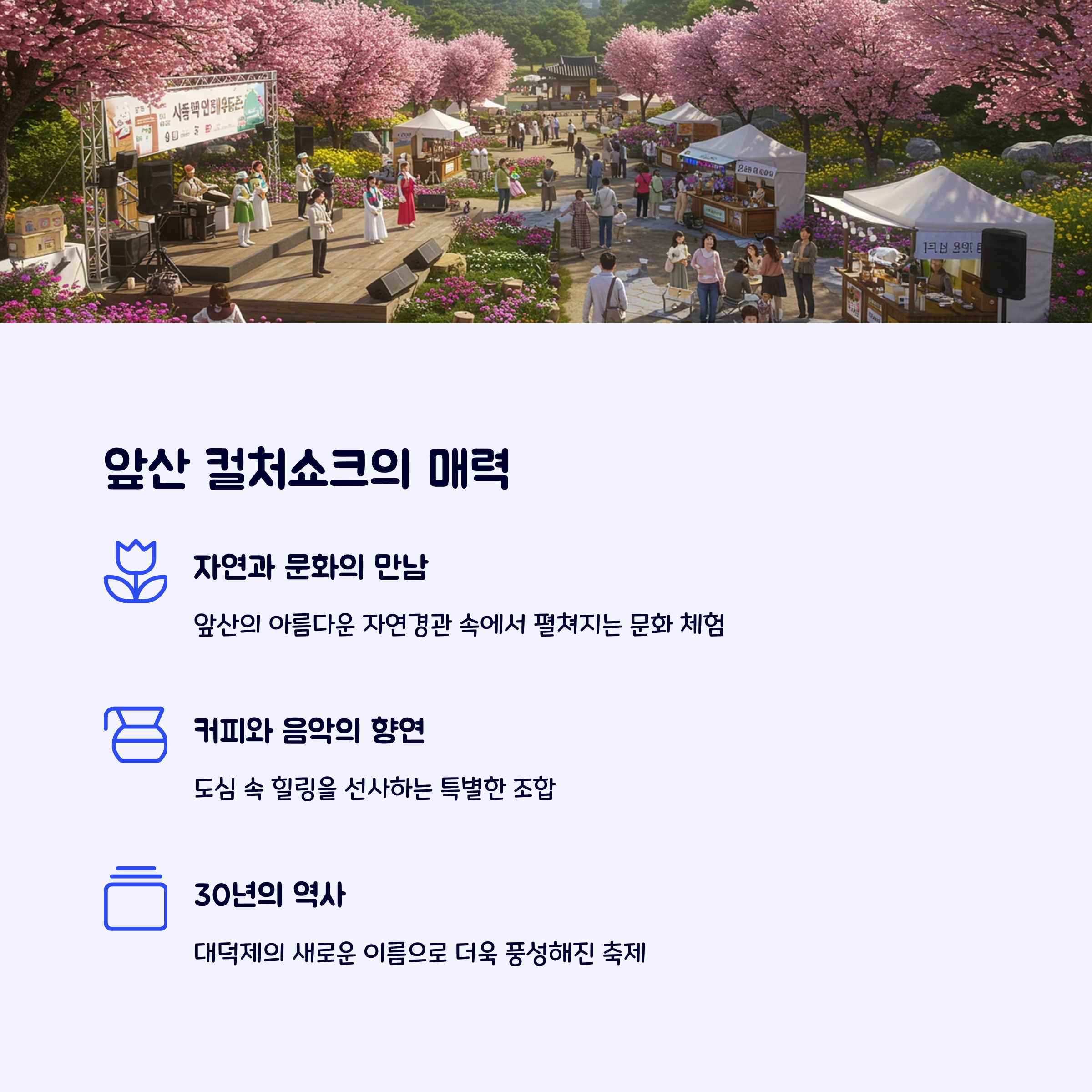 도심에서 자연과 문화를 동시에 누릴 수 있는 축제로 자리 잡았습니다.