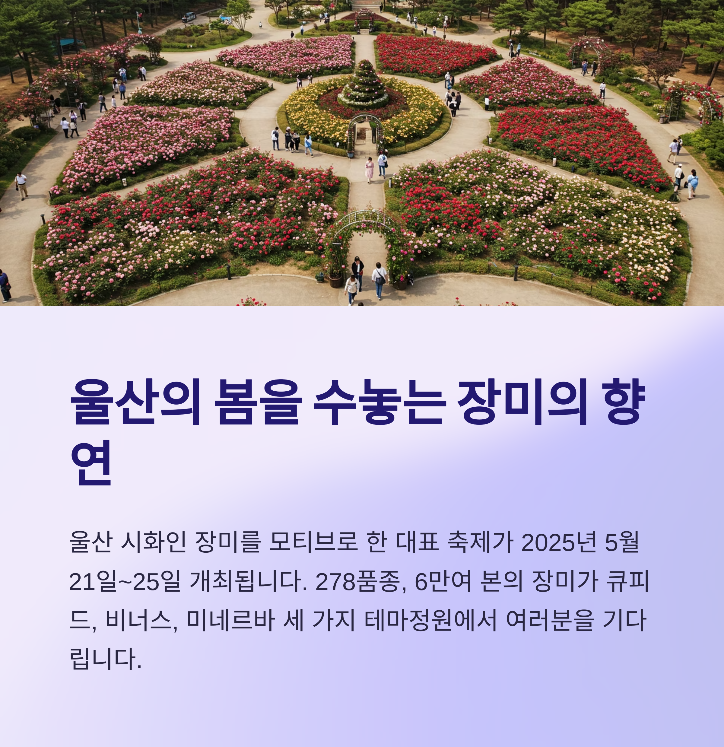 울산대공원 장미축제는 매년 5월, 도심 전체가 장미로 물드는 대형 봄 축제입니다.