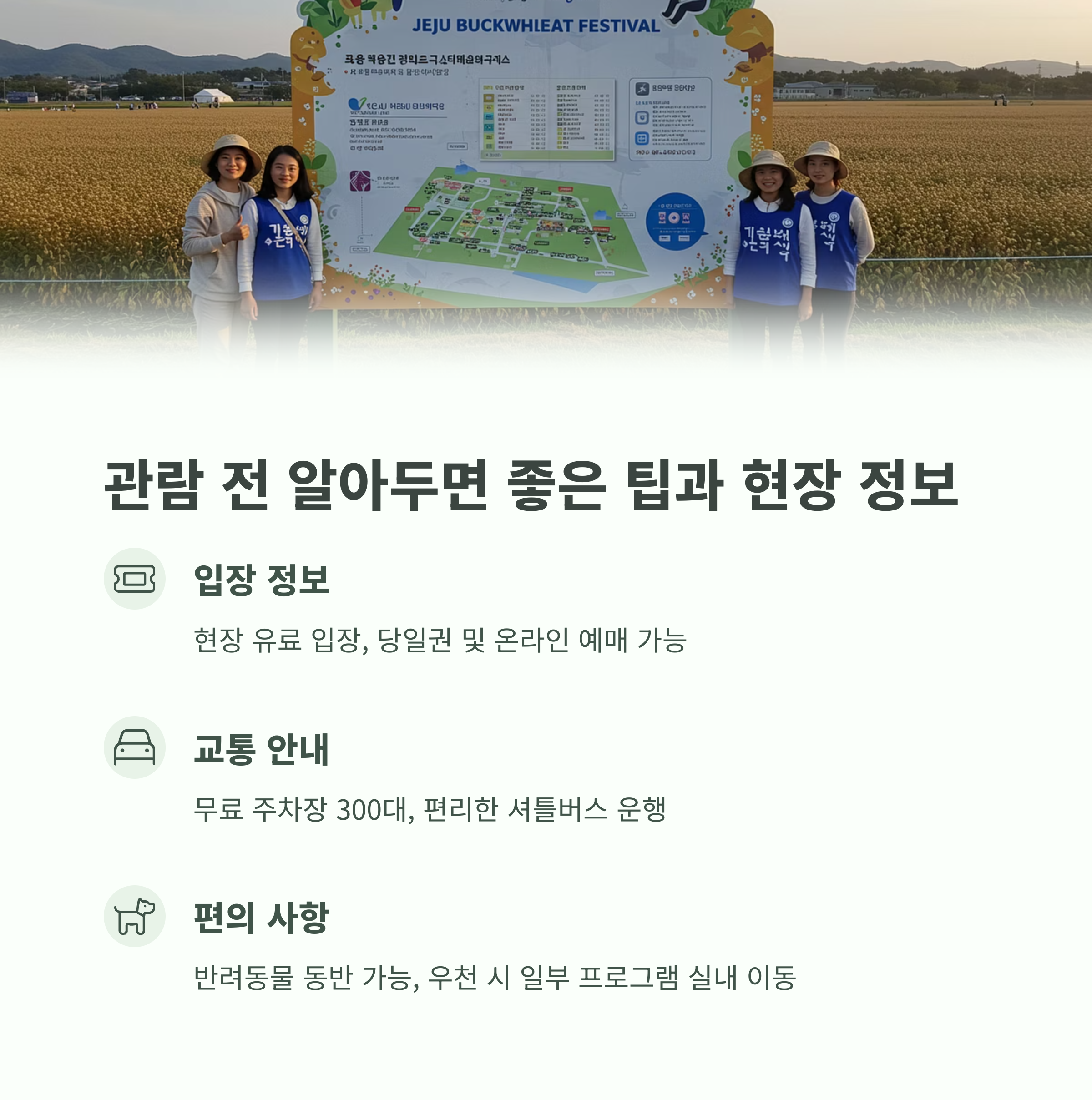 | 교통 | 제주공항 → 181번 버스 → 성읍환승정류장 → 택시 약 10분 |