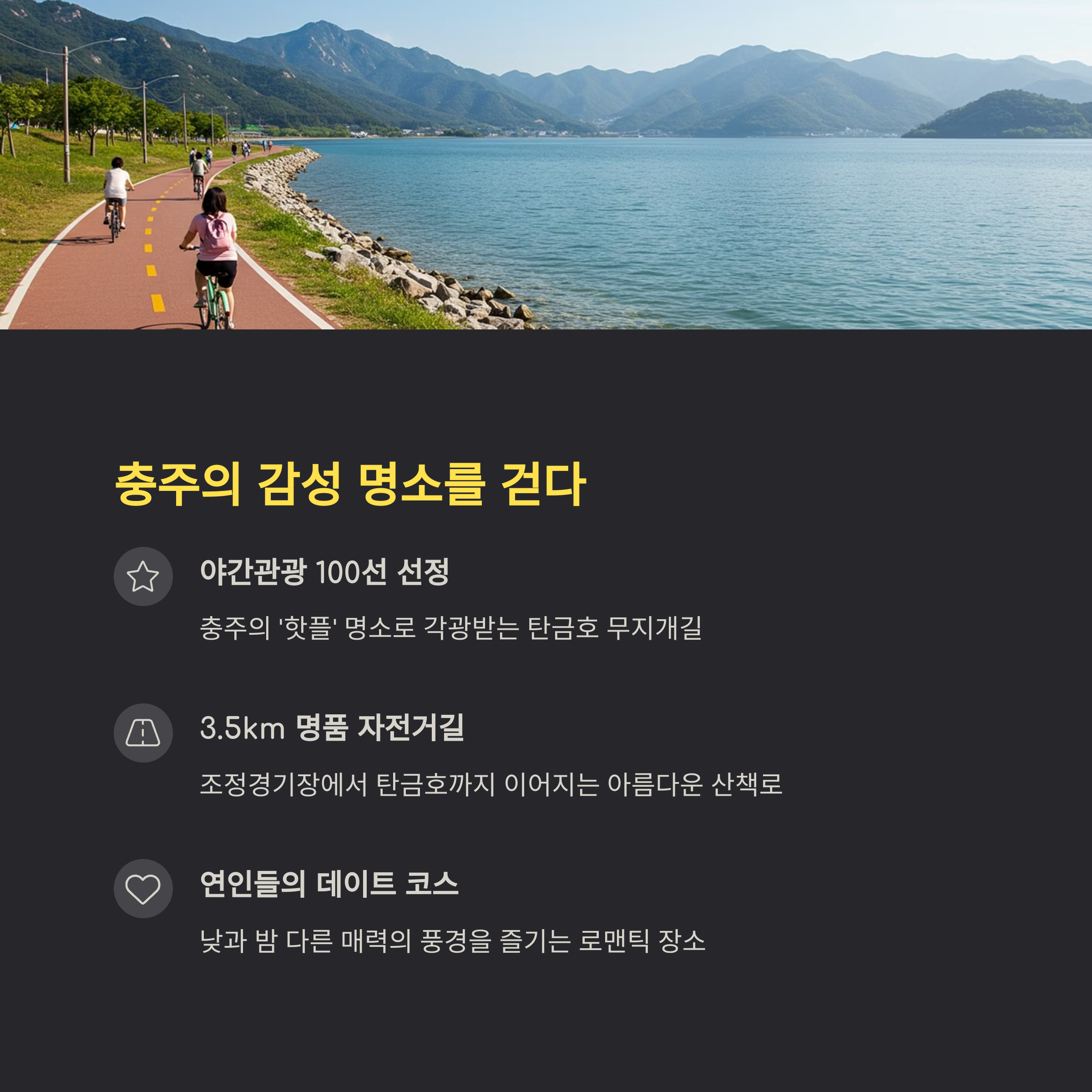 드라마처럼 빛나는 풍경과 함께하는 충주의 대표 산책 명소