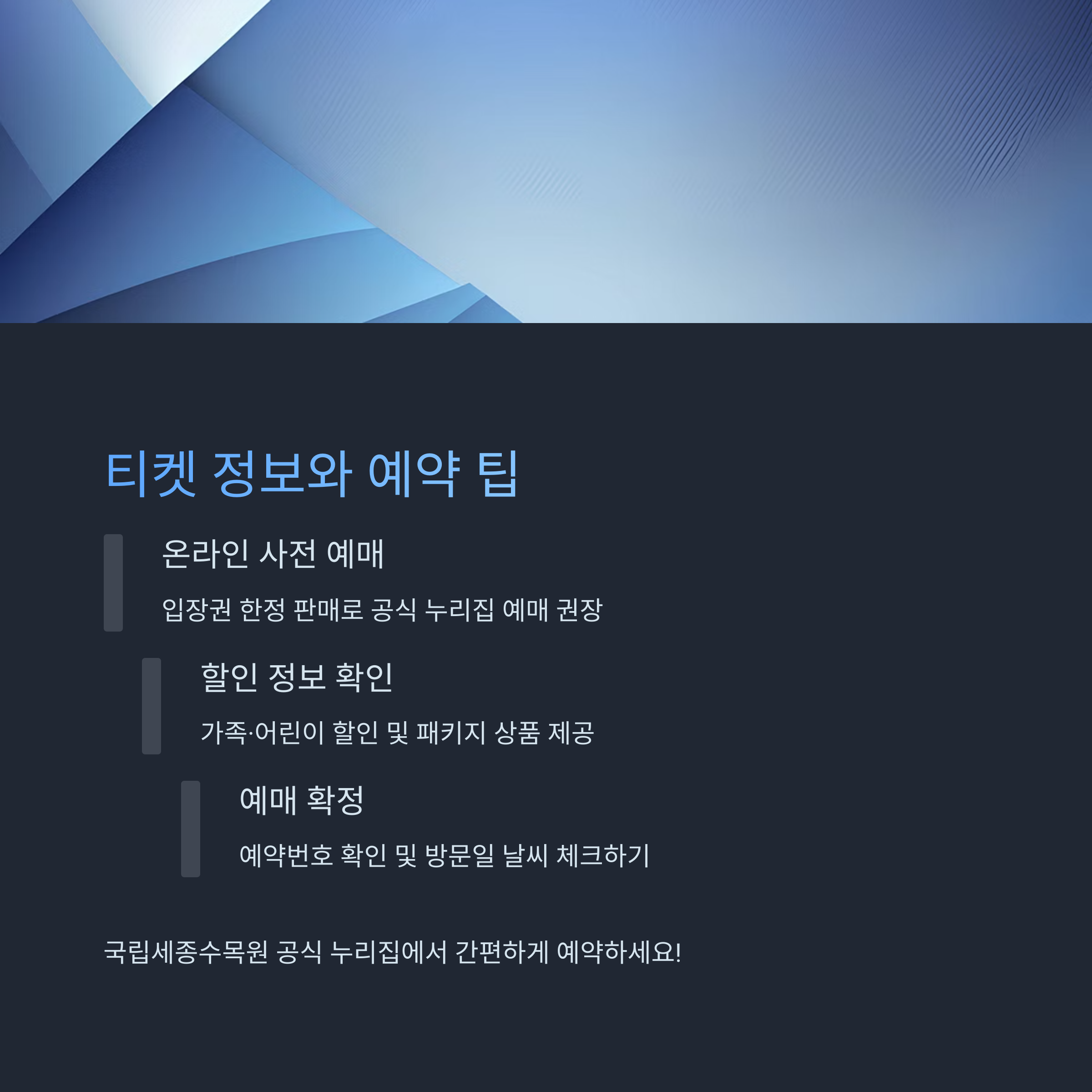 - 국립세종수목원 홈페이지 또는 예매 플랫폼 이용