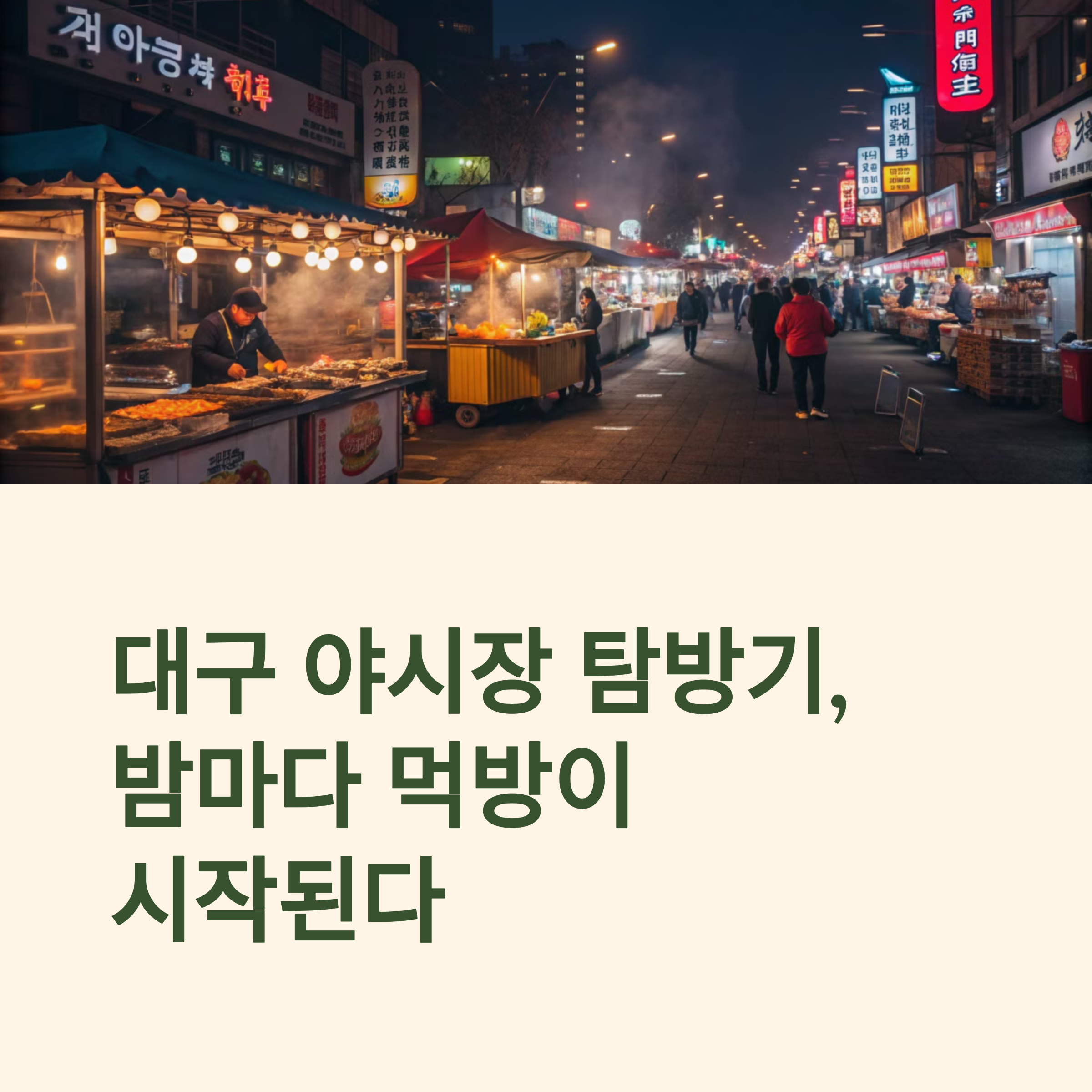 오늘은 대구의 밤을 화려하게 수놓는 야시장을 소개해드릴게요. 이곳은 단순한 먹거리 장터를 넘어서 지역 주민들과 여행객들이 어울려 만들어가는 문화와 정이 넘치는 공간이랍니다. 대구라는 도시가 가진 따뜻한 정서와 열정이 이 야시장 속에 고스란히 담겨 있는 걸 느낄 수 있었어요. 특히 다양한 먹거리 부스들이 골목골목을 가득 채우고 있어 밤만 되면 미식가들의 천국으로 바뀌는 장소! 야시장에서는 단순한 식사보다도 사람과의 소통, 그리고 순간을 즐기는 감성이 훨씬 중요하다는 것을 다시 느끼게 되었답니다. 이번 글을 통해 여러분도 마치 대구 야시장을 직접 걷는 듯한 생생함을 느껴보셨으면 좋겠어요.