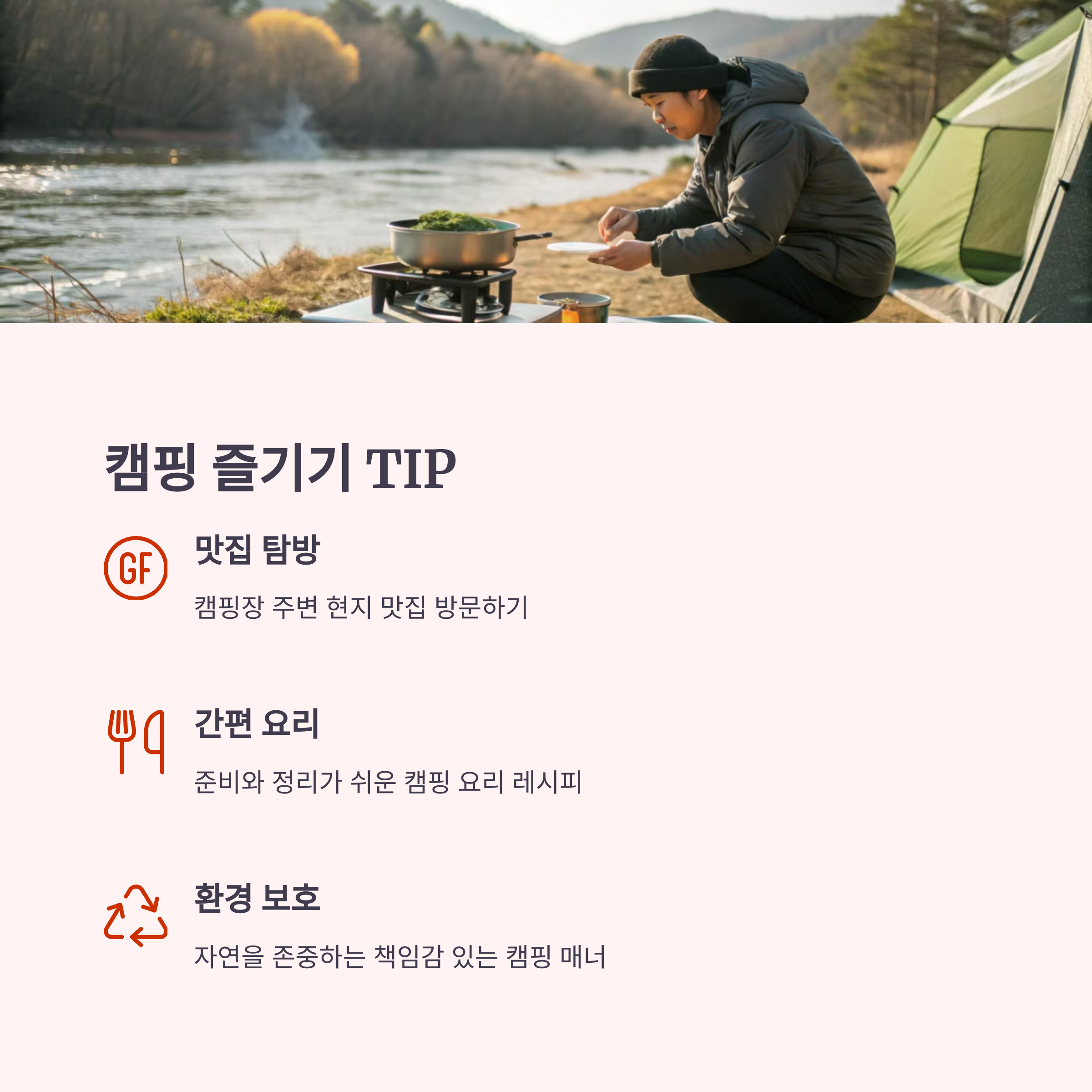 | 강가 캠핑 준비물 | 추천 캠핑장 | 계절별 캠핑 팁 |