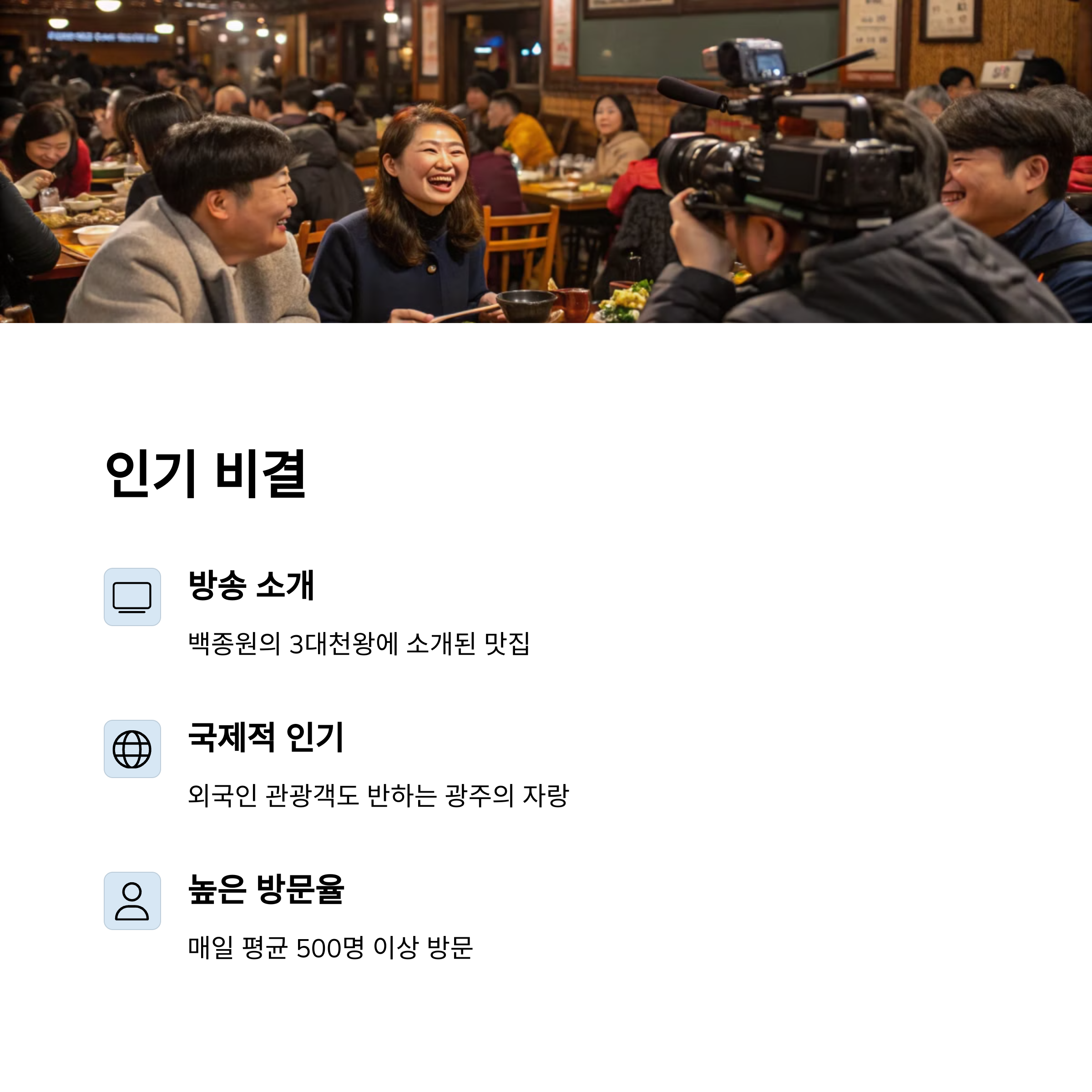 | 현지인도 인정한 정통 떡갈비 맛 | 방송에 소개된 인기 맛집 다수 존재 | 여행 일정에 넣으면 절대 후회 없는 곳 |