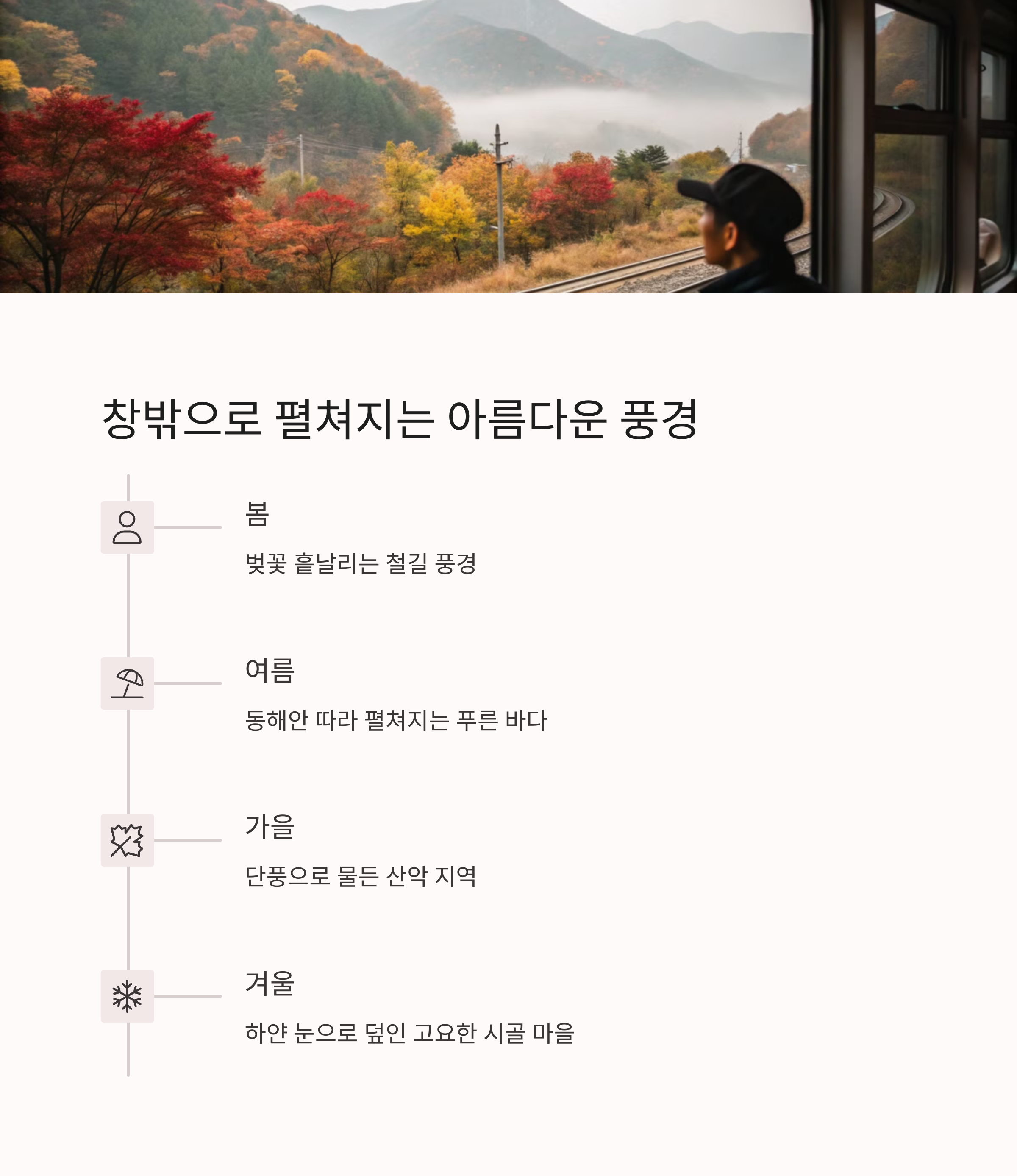 | 모바일 발권으로 편하게 이용 가능 | 기차 시간표와 교통 연계 체크 | 후기와 평점은 꼼꼼히 확인해야 해요 |