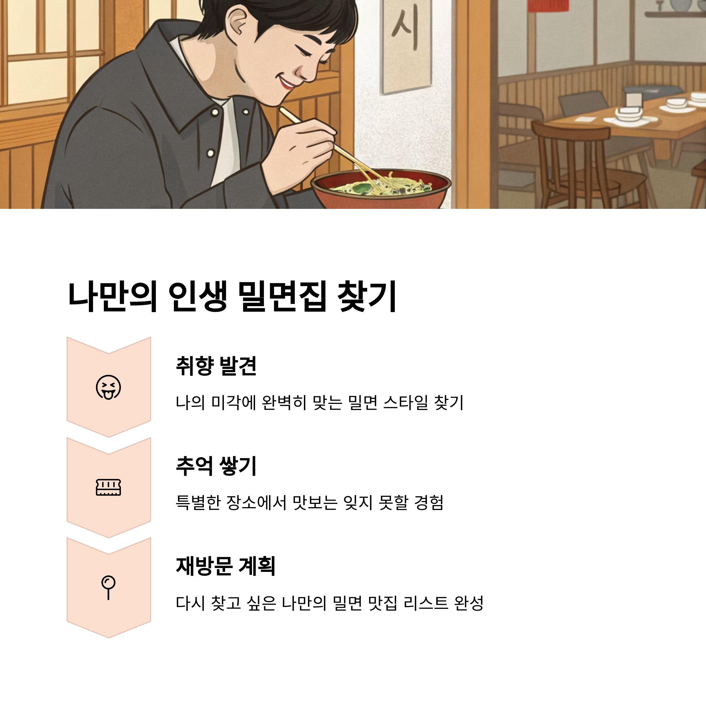 | 탱글한 면발, 다채로운 고명 | 담백한 구성, 대기 줄 있음 | 인스타 감성, 비빔 밀면 인기 |