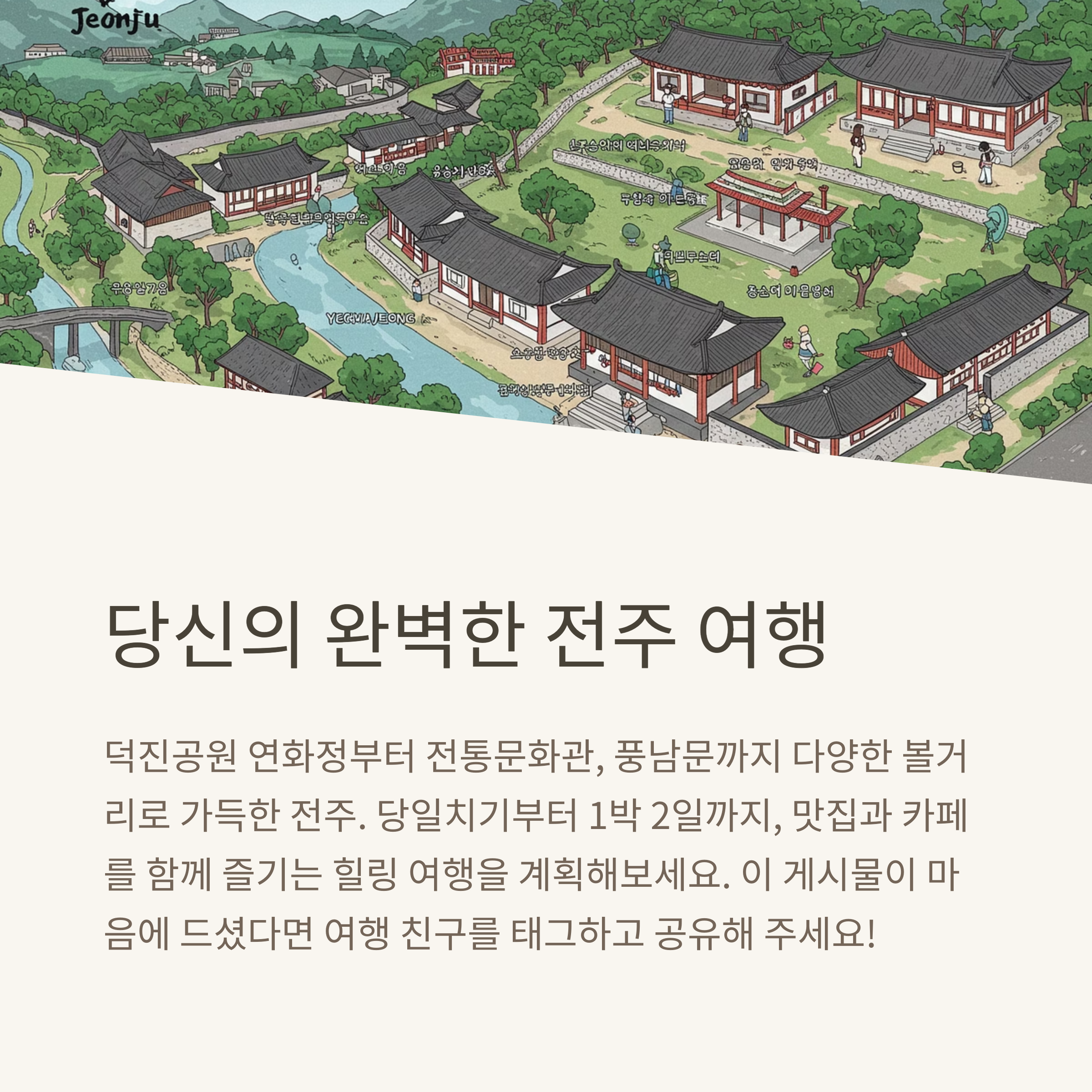 전주 덕진공원 여행은 감성적인 야외 정자 풍경과 더불어 실내에서 즐길 수 있는 전통 체험과 박물관 관람까지 완벽한 균형을 자랑합니다. 당일치기 여행으로도 손색이 없고, 여유가 된다면 1박을 하며 밤의 덕진공원 야경도 함께 즐기는 것을 추천드립니다. 무엇보다 날씨에 구애받지 않고 알차게 시간을 보낼 수 있다는 점에서 계절과 상관없이 방문하기에 참 좋은 여행지입니다.