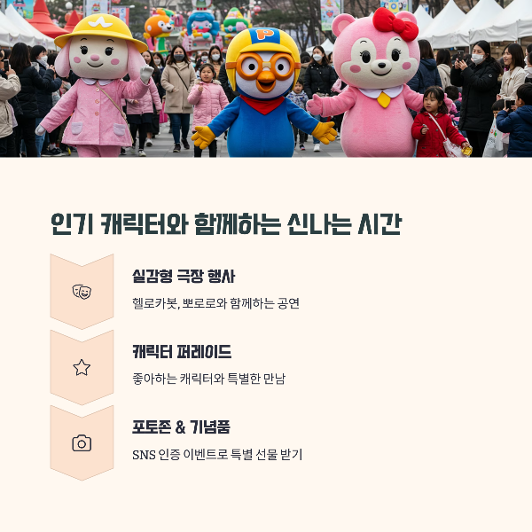 아이들이 좋아하는 인기 캐릭터 쇼와 다양한 체험 부스까지 마련되어 있어