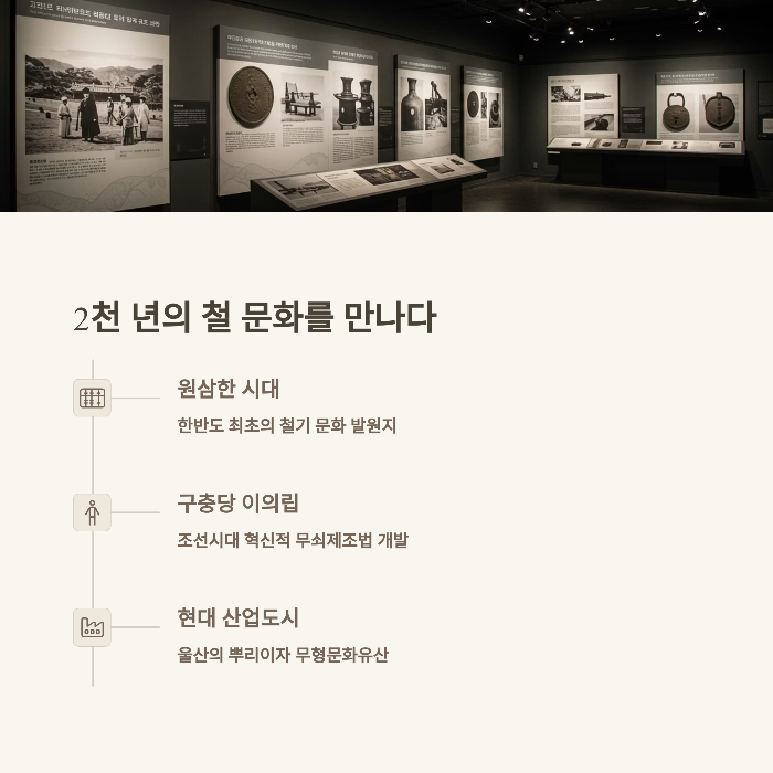 울산은 한반도 최초의 철 생산지로 알려져 있으며 당시의 기술이 오늘날까지 이어져 오고 있습니다