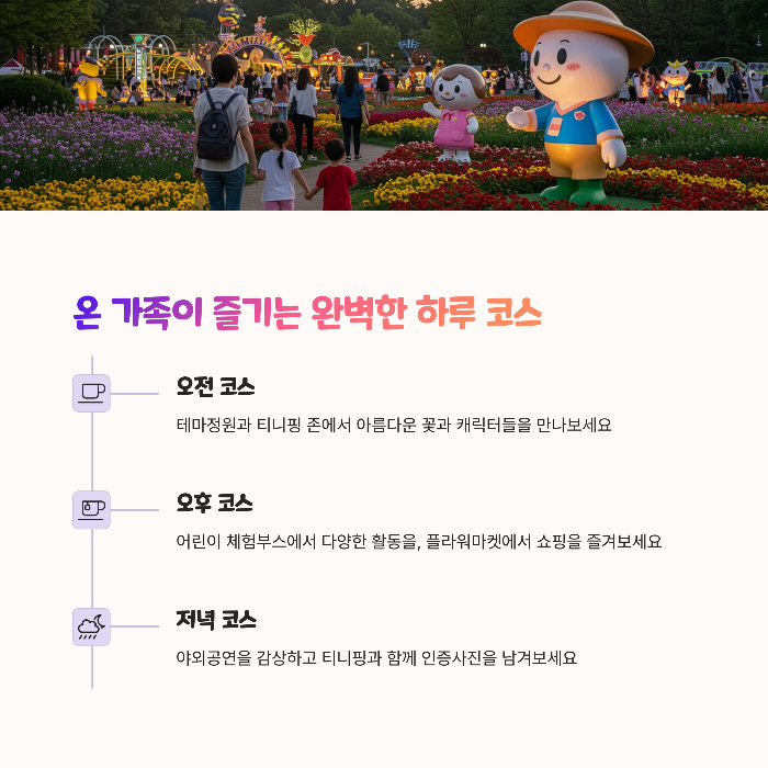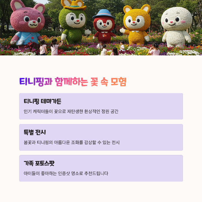 티니핑 포토존과 캐릭터 테마 꽃길은 필수 방문지입니다