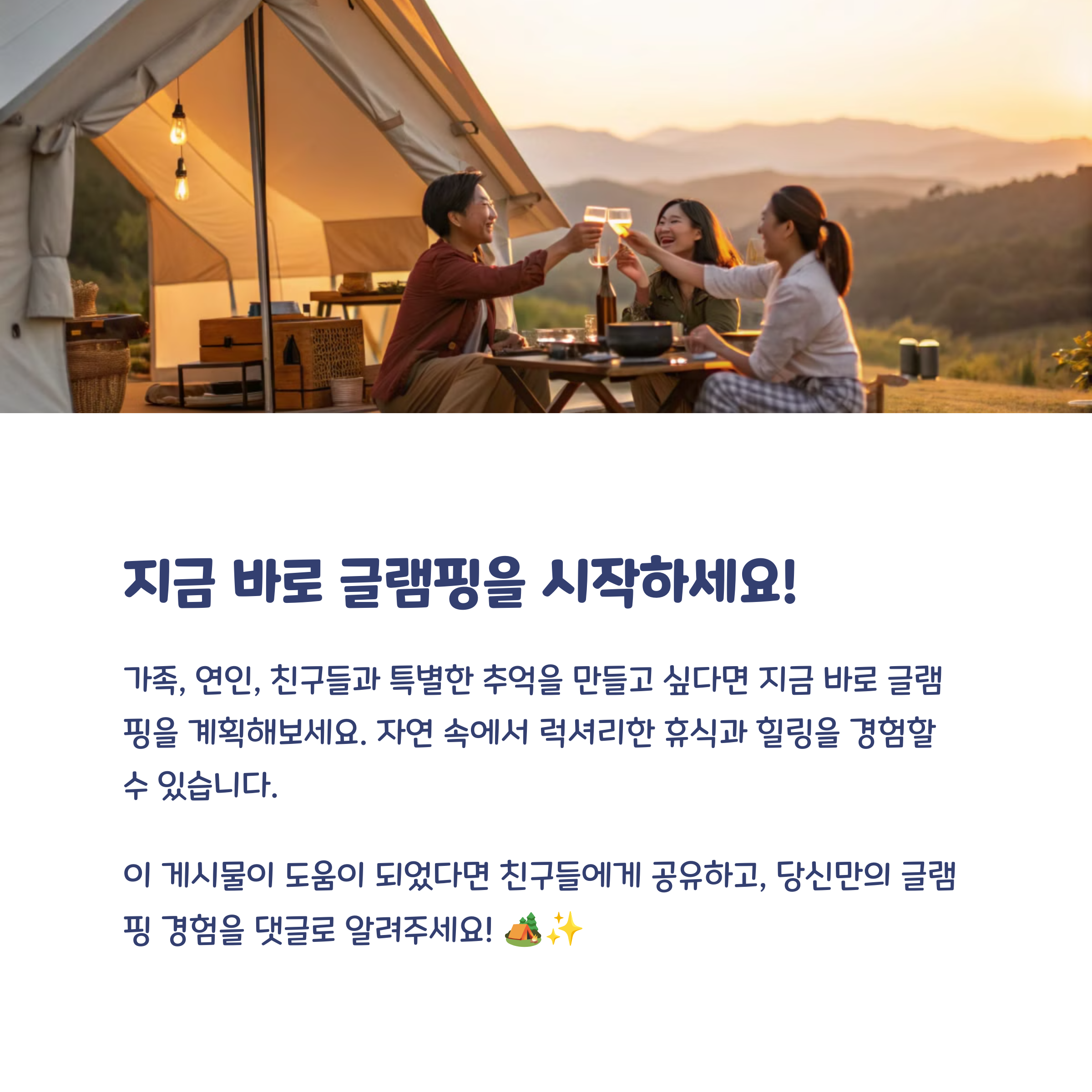 | 분위기 있는 글램핑 장소에서 감성을 만끽하세요 | 인기 있는 국내 글램핑 5곳을 소개합니다 | 캠핑이 처음이라면 글램핑부터 시작해보세요 |