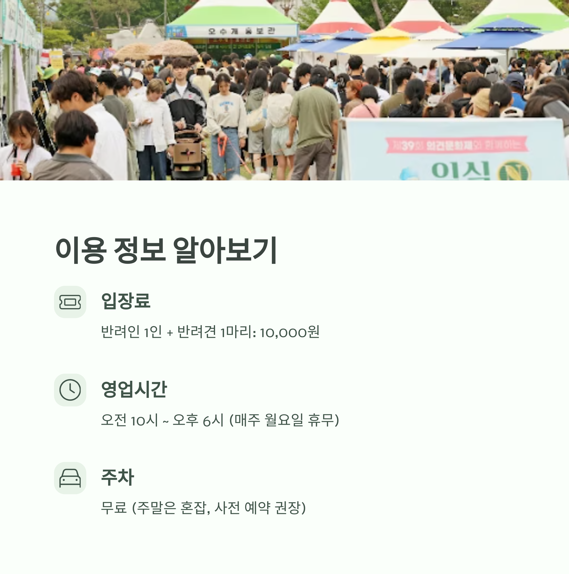 - 반려인 1인 + 반려견 1마리 기준: 10,000원