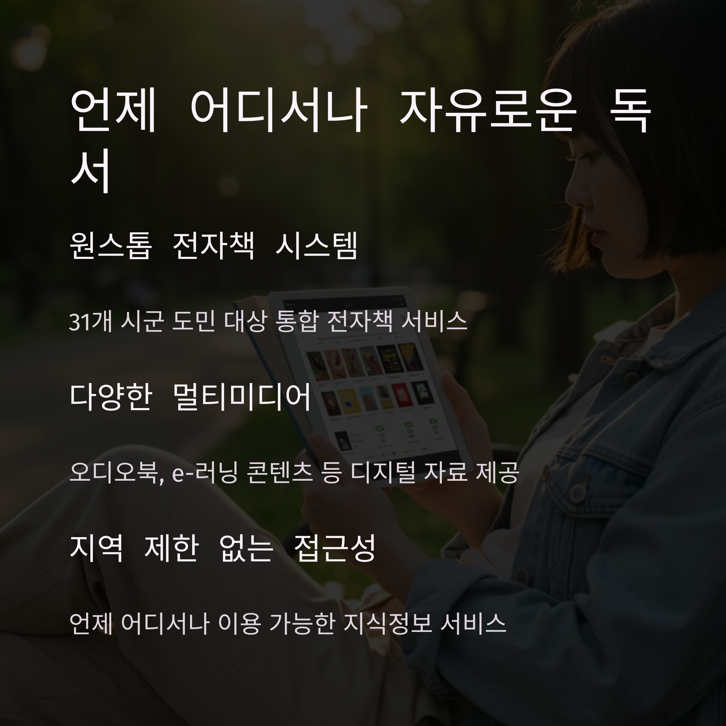 이 서비스는 인기·신간 도서를 모바일과 PC, 이북 리더기로