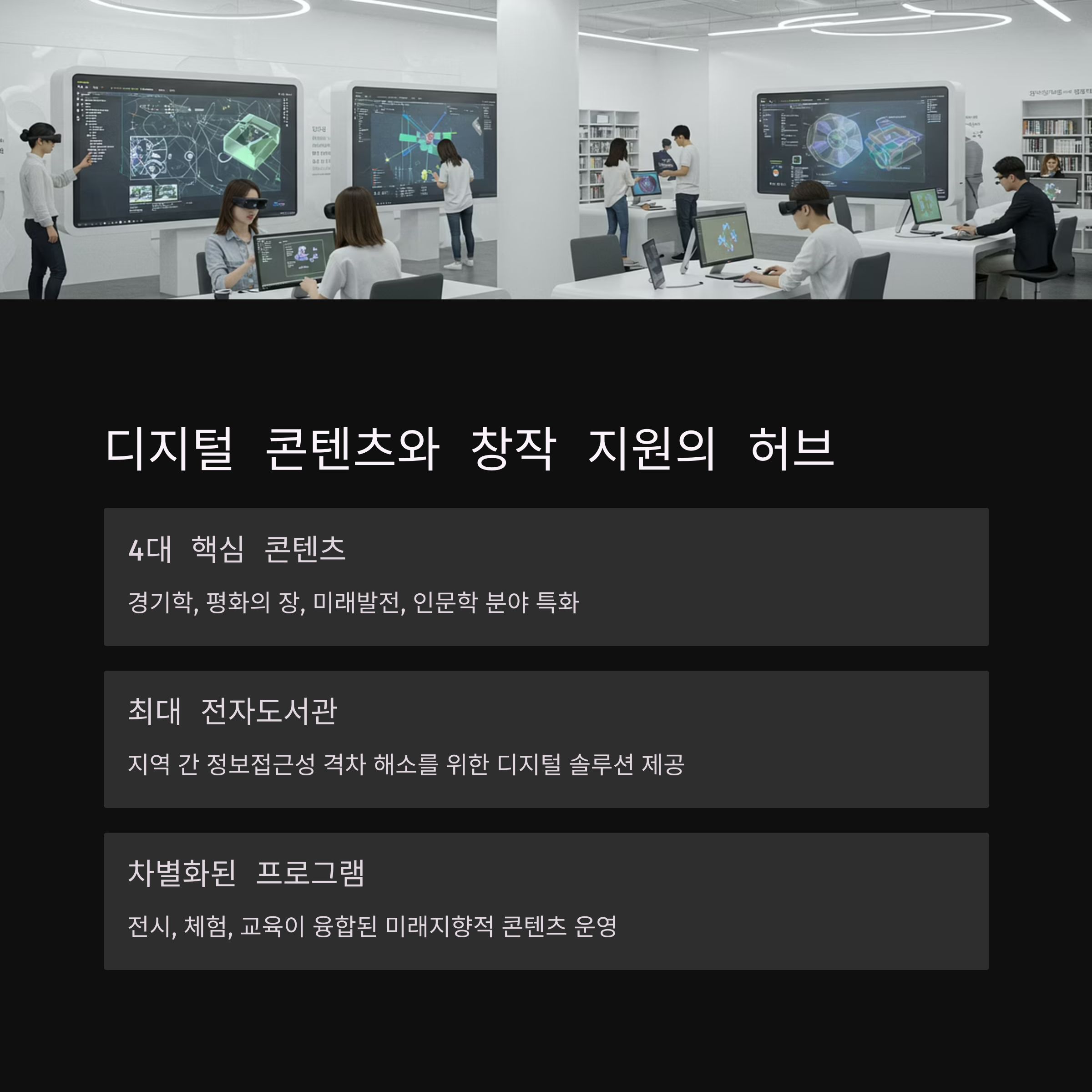 디지털 콘텐츠 이용, 창작 활동 지원, 협업 공간 제공 등을 통해