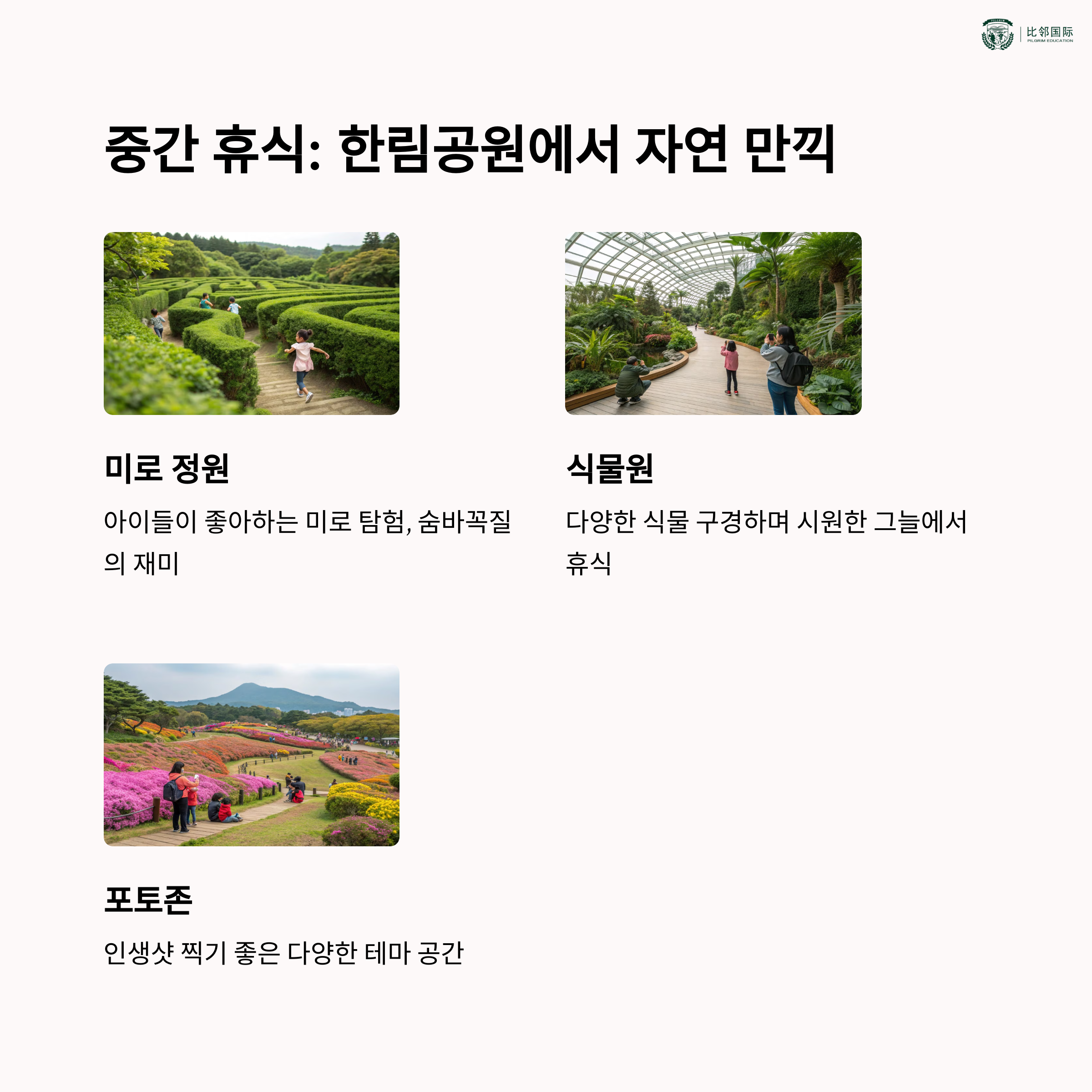 | 여행 시간에 따라 유연한 동선 구성이 가능해요 | 아이와 어른 모두를 고려한 구성 | 동→남→서쪽 순으로 효율적 동선 구성 |