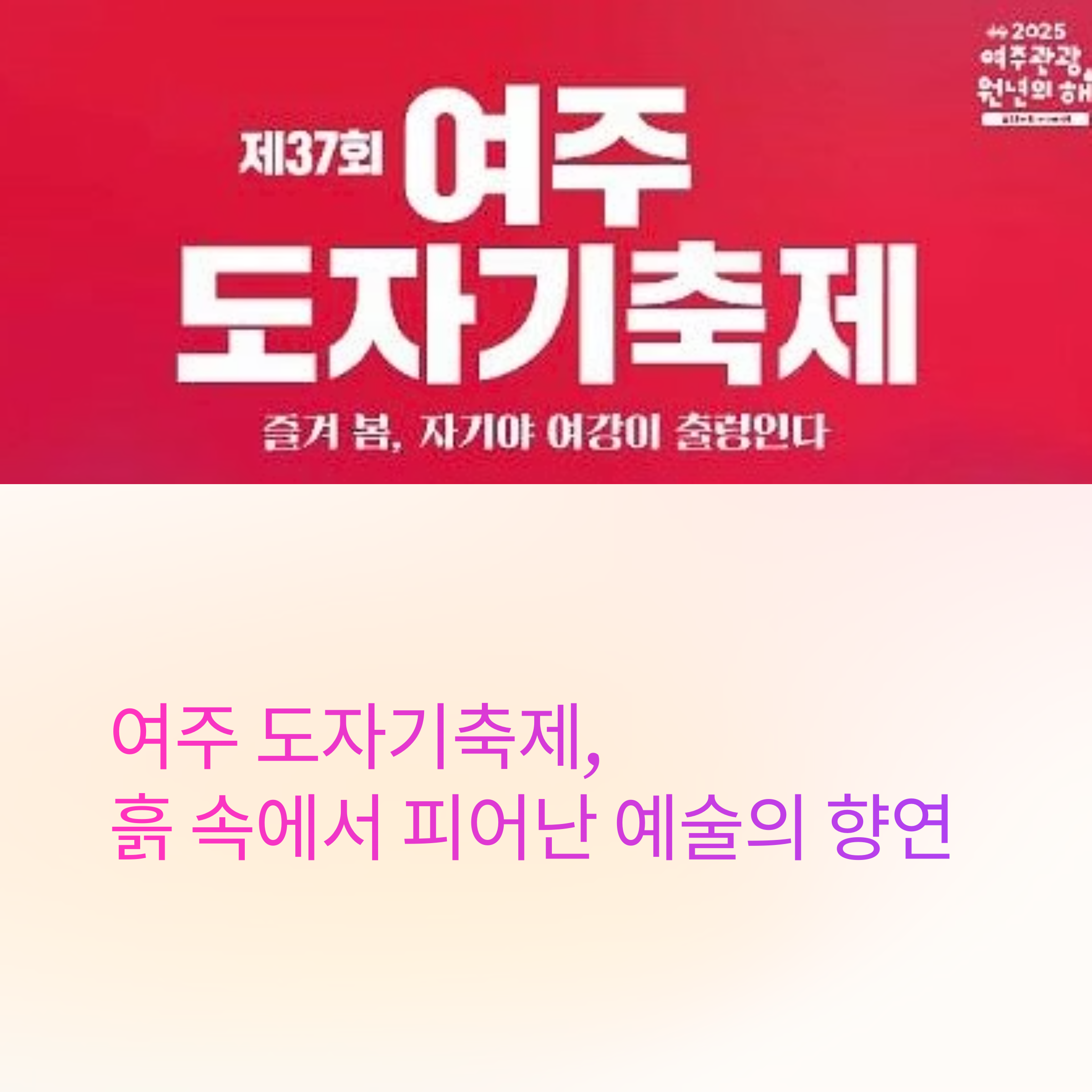 가족과 함께 도자기의 세계로 떠나는 시간자연과 예술이 어우러지는 계절, 따사로운 봄 햇살 속에서 도자기의 도시 여주에서는 매년 봄 특별한 축제가 열립니다. 바로 '여주 도자기축제'인데요. 전통과 현대가 조화를 이루는 이 축제는 도자기를 사랑하는 이들에게 단순한 전시회를 넘어 직접 만들고 느끼는 체험형 문화 축제로 자리 잡았습니다. 아이들과 함께 흙을 만지고, 장인의 손길을 가까이서 관찰하며 진정한 도자기 예술의 가치를 몸소 체험할 수 있는 기회죠. 또한 여주 지역 특산물과 다양한 먹거리도 함께 즐길 수 있어 축제를 찾는 이들의 만족도를 더욱 높이고 있습니다. 평소에는 보기 어려운 공예 장인들의 생생한 시연과 작품 전시를 통해 문화적 감수성을 키우는 것은 물론, 가족 단위 나들이 장소로도 훌륭한 선택이 되..